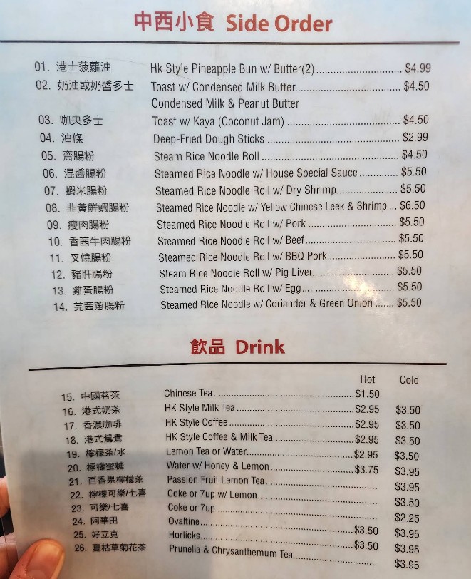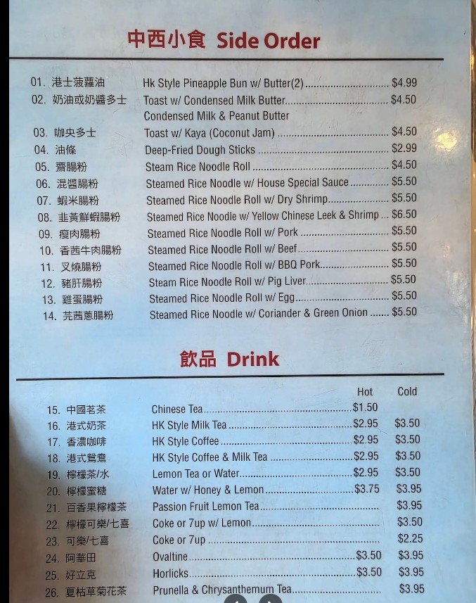 Went on Memorial Day and it was packed right from when they opened. They have both indoor and outdoor seating, and we had to wait 10 minutes. The breakfast menu is simple and everything is delicious. The combination breakfast is very good value. The food is very satisfying and comfortable. The staff are friendly and efficient. Their signature HK pineapple buns are definitely the highlight.
